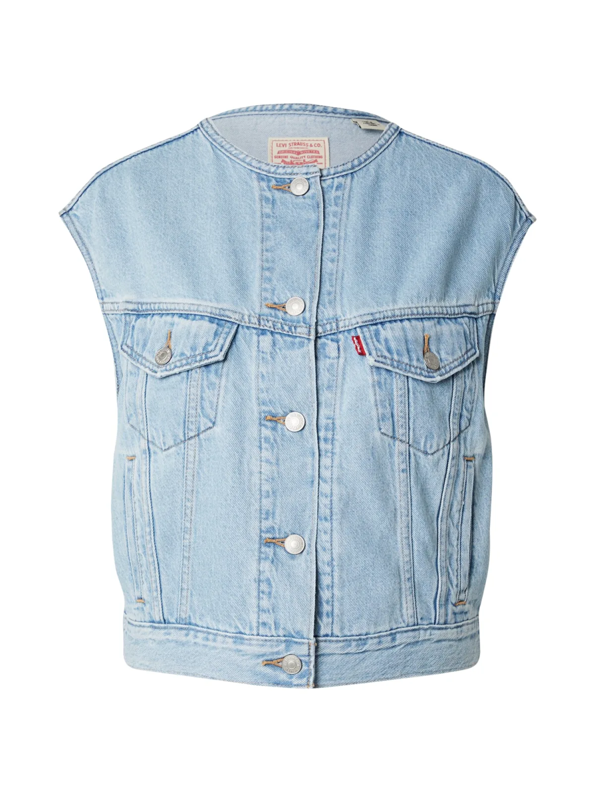 - Bij aboutyou.nl kun je LEVI'S Bodywarmer 'Collarless Shrunken '90s Trucker Vest' blauw denim kopen voor slechts €89,90