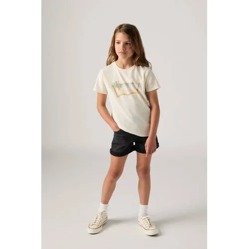 Deze Levi's korte broek voor meisjes is een praktische basic voor warme dagen en actieve momenten. De black denim kleur geeft een tijdloze uitstraling en laat zich makkelijk combineren met T-shirts, tops en sneakers. Dankzij de combinatie van katoen, polyester en een klein percentage elastaan voelt de shorts soepel aan en blijft de pasvorm mooi tijdens het dragen en bewegen.Comfortabele denim in black Gemaakt van negenenzestig procent katoen, dertig procent polyester en een procent elastaan voor een stevige, maar licht elastische denim Black denim kleur met effen ontwerp, ideaal als basis in de kledingkast Vijf-pocketmodel, met twee achterzakken, twee voorzakken en een kleine muntzak Rits- en knoopsluiting voor een vertrouwde en veilige sluiting Niet verstelbare taille, voor een strakke en nette afwerking in de band Denim shorts, geschikt voor zomerse dagen, sportieve activiteiten en casual outfitsEen korte broek die makkelijk combineertDeze denim shorts past goed bij zowel lichte als donkere bovenkleding. In combinatie met een luchtige top ontstaat een comfortabele outfit voor school of vrije tijd. Met een vest of hoodie erboven is de korte broek ook prettig te dragen op frissere dagen.Levi's als vertrouwde denim specialistLevi's is bekend om sterke denimkwaliteiten en doordachte pasvormen. Ook voor kinderen biedt het merk collecties die aansluiten op dagelijks gebruik, met aandacht voor comfort en slijtvastheid. Zo krijgt kinderkleding een moderne en praktische basis.Een veelzijdige denim short die elk seizoen opnieuw uit de kast komt.