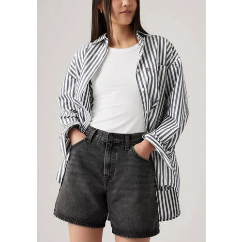 Zoek je een korte broek met een relaxte look en een stevige denim feel, dan is deze Levi's denim short voor dames een praktische basis voor je zomeroutfits. De HIGH BAGGY SHORT heeft een korte lengte, een high waist en een losse pasvorm. Dat geeft een comfortabele, rechtvallende look met wat extra ruimte rond je benen. Gemaakt van 100% katoen met non-stretch denim voelt de stof stevig aan en blijft de short goed in model.Details van de HIGH BAGGY SHORT Kleur: black denim voor een donkere denim look Pasvorm: loose fit met high waist voor een ontspannen, rechtvallende look Materiaal: gemaakt van 100% katoen, non-stretch denim met stevige touch Sluiting: klassieke rits- en knoopsluiting aan de voorkant Zakdetails: praktische 5-pocket stijl met twee zakken voor, een muntzakje en twee achterzakken Lengte: kort model, geschikt voor zomerse dagen Collectie: onderdeel van de Rebel collectie, passend bij een casual, eigentijdse stijlCasual short voor warme dagenDeze denim short is gemaakt voor zomerse dagen. Combineer met een eenvoudig T-shirt of een luchtige blouse en sneakers voor een ontspannen look. De high waist sluit aan in de taille, terwijl de losse pijpen voor bewegingsvrijheid zorgen.Levi's en denimLevi's is al generaties lang een bekend merk als het gaat om denim. Het merk staat bekend om stevige materialen, herkenbare fits en doordachte details. Met deze HIGH BAGGY SHORT haal je een korte broek in huis die aansluit bij de klassieke Levi's stijl in een moderne, zomerse uitvoering.Een denim short die je de hele zomer door vaak draagt.
