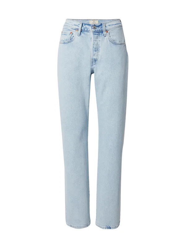 dames straight fit jeans van Levi's® 300;model '501®';look: denim;Pasvorm: straight fit;Applicatie: labelpatch;Details: riemlussen;Sluiting: knoop en verborgen ritssluiting;Zakken (onderstuk): 5-pocketmodel;Materiaal: katoenmix