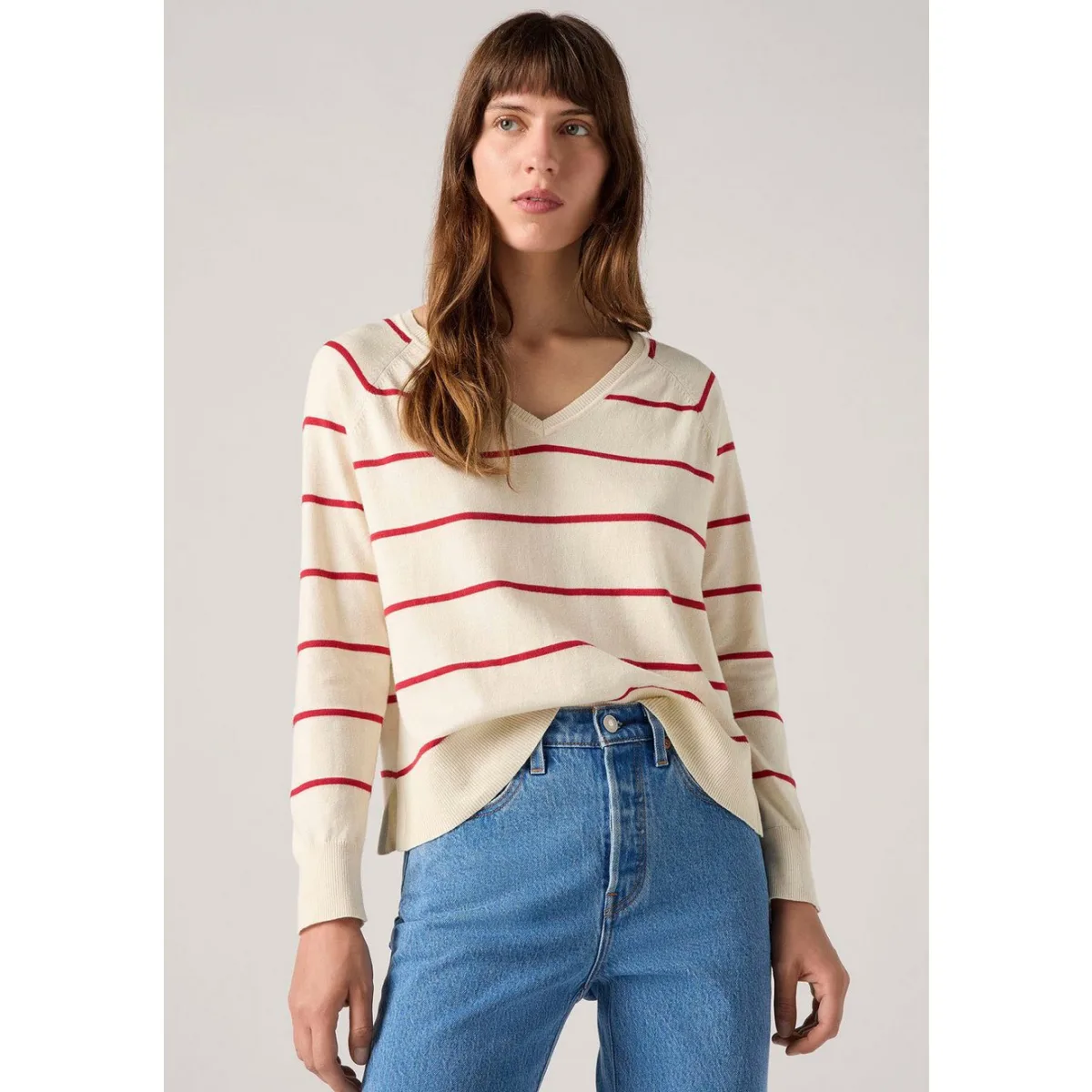 Levi's Petal Vneck Sweater Stephanie Stripe Buttercream