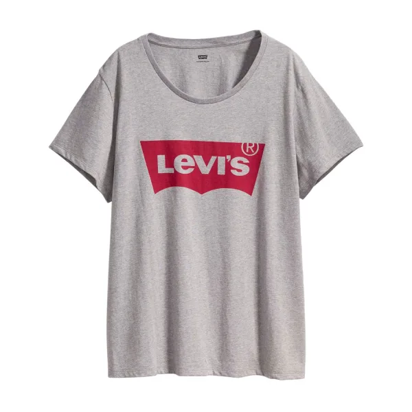 Levi’s Plus Perfect Housemark Logo T-shirt voor dames, grijs gemêleerd Prijzen