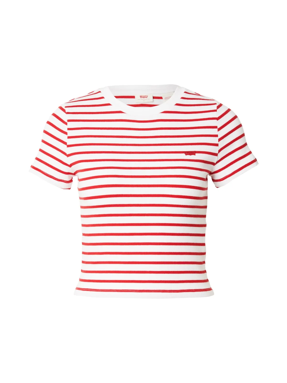 T-shirt voor dames van Levi's®;Katoenmix met stretchgehalte;Slim fit;Riblook;Labelstitching;Ronde hals;Ruglengte bij maat S: 42 cm