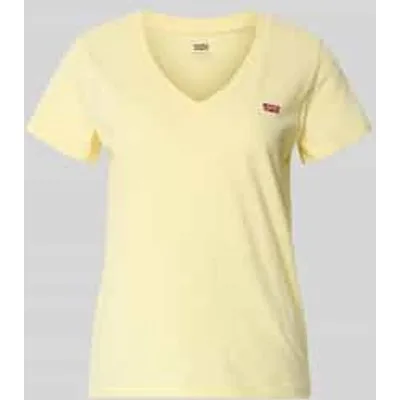 dames T-shirt van Levi's®;look: effen;pasvorm: slim fit;Applicatie: labelpatch;hals: V-hals;mouwvorm: korte mouw;materiaalverwerking: jersey;Materiaal: puur katoen