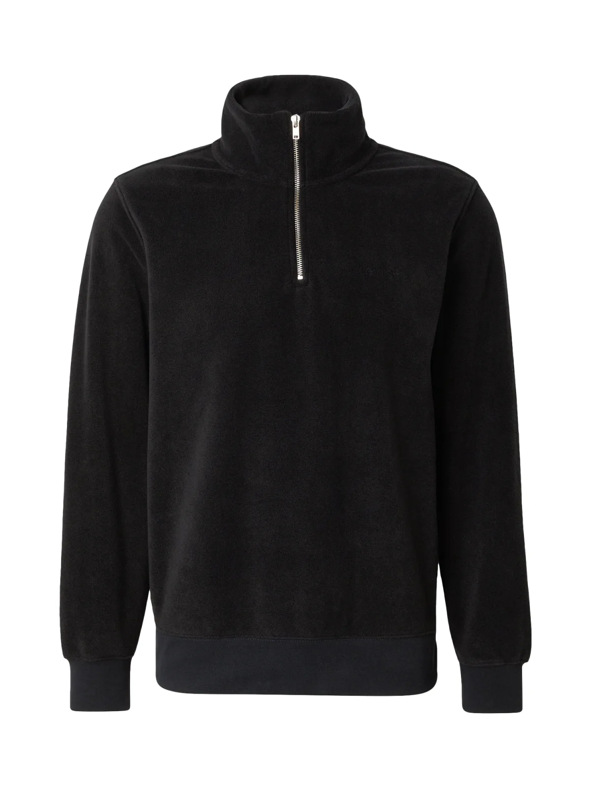 Design: Geribd ceintuurtje, Staande kraag, Halve rits; Type sluiting: Ritssluiting; Materiaal: Fleece; Halstype: Schipperskraag; Motief: Effen; Extra's: Label borduurwerk, Op staal naden; Pasvorm: Normale pasvorm; Armlengte: Lange mouw