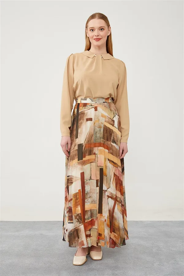 Levidor Mor Abstracte Print Chiffon Rok