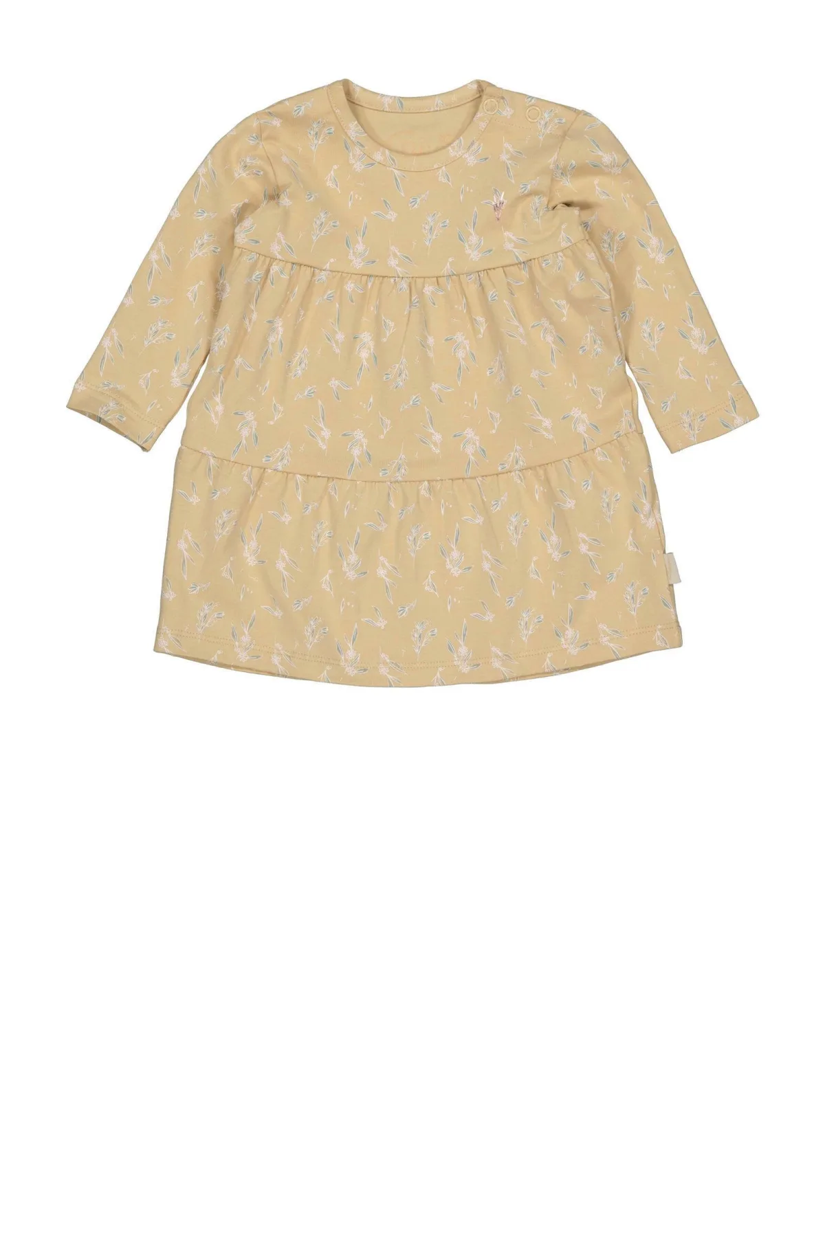 LEVV gebloemde baby A-lijn jurk LNANNENOS van katoen geelgroen