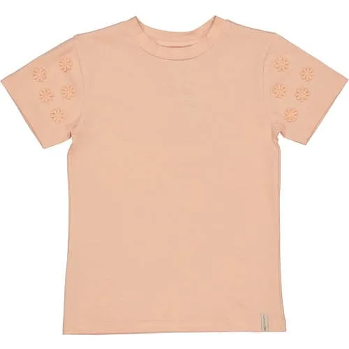 Dit lichtoranje meisjes T-shirt van katoen van LEVV Little is een fijne basic voor elke dag. De rechtvallende pasvorm geeft genoeg bewegingsruimte om te spelen, terwijl de zachte stof prettig aanvoelt op de huid. De effen kleur maakt het shirt makkelijk te combineren met rokjes, jeans of een joggingbroek.Zachte stof en speels detail Gemaakt van 95% katoen en 5% elastaan voor een soepele, zachte touch Korte, rechte mouwen die comfortabel aansluiten Ronde hals die makkelijk over het hoofd gaat, zonder sluiting Lichtoranje kleur die past binnen een preppy kledingstijl Subtiele 3D applicatie voor een speels accent op een effen basis Wasbaar op 30 graden, warm strijkbaar (2 punten) Niet drogen in de droogtrommel om de pasvorm mooi te houdenHandig in de kledingkast van baby tot schoolkindDit T-shirt is geschikt voor baby, peuter, kleuter en schoolkind, en sluit goed aan op het dagelijks leven. Van de opvang tot een speelafspraak, het shirt blijft een praktische keuze. De rek in de stof maakt aan- en uitkleden eenvoudig.LEVV Little voor moderne kidsLEVV Little ontwerpt kinderkleding met een moderne uitstraling en oog voor draaggemak. De stijlen zijn goed doordacht en sluiten aan bij wat ouders belangrijk vinden: fijne stoffen, mooie kleuren en pasvormen waar kinderen zich vrij in kunnen bewegen.Een comfortabele basic die moeiteloos meedraait in de dagelijkse was en steeds weer uit de kast komt.