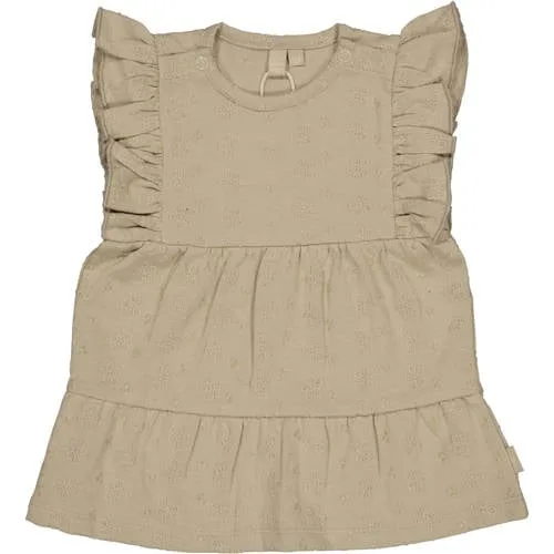 Voor warme dagen of feestelijke momenten: deze LEVV Newborn meisjes jurk in bruin is een comfortabele keuze voor je kleintje en past bij allerlei gelegenheden. De mouwloze jurk heeft een A-lijn model, waardoor er genoeg bewegingsruimte is om te rollen, kruipen en spelen. Gemaakt van 100% katoen voelt de stof zacht aan op de huid, ideaal voor de gevoelige babyhuid.Verfijnde details voor elke dag Mouwloos model, prettig op warme dagen of onder een vestje A-lijn pasvorm voor een luchtig en comfortabel gevoel Borduursels en ruches geven de effen jurk een speelse uitstraling Drukknoopsluiting aan de bovenkant voor eenvoudig aan- en uittrekken Ronde hals die netjes aansluit zonder te knellen Gemaakt van 100% katoen, zacht en soepel voor dagelijks gebruik Bruine kleur die zich rustig laat combineren met leggings, maillots en sokjesPraktisch in het dagelijks ritmeDeze korte jurk is praktisch voor thuis, maar ook handig als je op pad gaat. De drukknopen maken verschonen en omkleden makkelijker, terwijl de mouwloze snit ruimte laat voor een rompertje eronder. Zo pas je de outfit eenvoudig aan het seizoen aan.LEVV Newborn met oog voor kleintjesLEVV Newborn ontwerpt kleding speciaal voor de allerkleinsten, met aandacht voor pasvorm, draagcomfort en mooie afwerking. De collecties sluiten aan op het dagelijks leven met een baby, zodat jij kiest voor zachte materialen, doordachte details en een ontspannen stijl.Een praktische basisjurk die comfort en verzorgde details combineert tot een handige basis in de babykast.