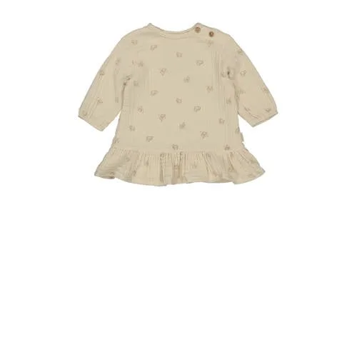 De ‘LEVV Newborn’ jurk voor meisjes is een charmant exemplaar. Gemaakt van 100% katoen, met een beige kleur en ruches. De jurk heeft lange mouwen, een ronde hals en een knoopsluiting. Perfect voor elke gelegenheid.