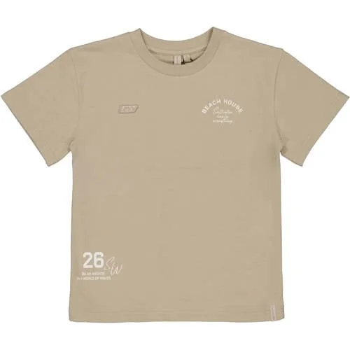 Dit zandkleurige LEVV T-shirt jongens is een fijne basic voor iedere dag. Het korte mouwtje en de ronde hals maken het gemakkelijk te combineren met jeans, een chino of een sportieve short. De subtiele tekstprint aan de voorkant geeft het shirt een eigentijdse uitstraling, zonder te druk te zijn.Comfortabele basic met moderne details Gemaakt van 95% katoen en 5% elastaan voor een soepele pasvorm Korte mouwen, ideaal voor schooldagen en vrije tijd Ronde hals die prettig aansluit Zandkleur die rustig oogt en makkelijk te matchen is Tekstprint op de voorkant voor een moderne, speelse look Geen zakken, waardoor het shirt glad en strak oogt onder een vest of jas Verpakking met één T-shirt, handig als gerichte aanvulling op de kledingkastElke dag draagbaarDit T-shirt past goed bij het dagelijkse leven van actieve jongens. Het zachte katoen voelt prettig aan op de huid en door de toevoeging van elastaan beweegt het materiaal makkelijk mee tijdens spelen, fietsen of gym.LEVV: eigentijds en doordachtLEVV richt zich op moderne kinderkleding met aandacht voor pasvorm en draaggemak. De ontwerpen zijn eigentijds, maar blijven praktisch in het dagelijks gebruik. Zo ontstaat kleding waar kinderen zich vrij in kunnen bewegen en die tegelijkertijd verzorgd oogt.Een veelzijdig T-shirt dat moeiteloos meedraait in alle plannen van de dag.