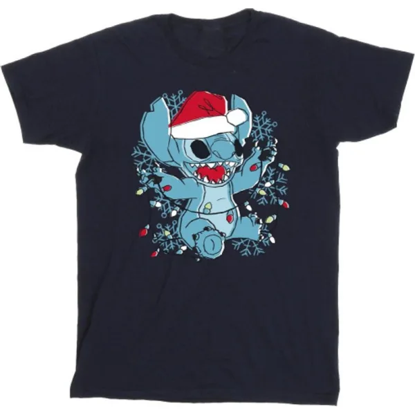 Li-cense Disney heren lilo and stitch kerstlichtjes schets t-shirt