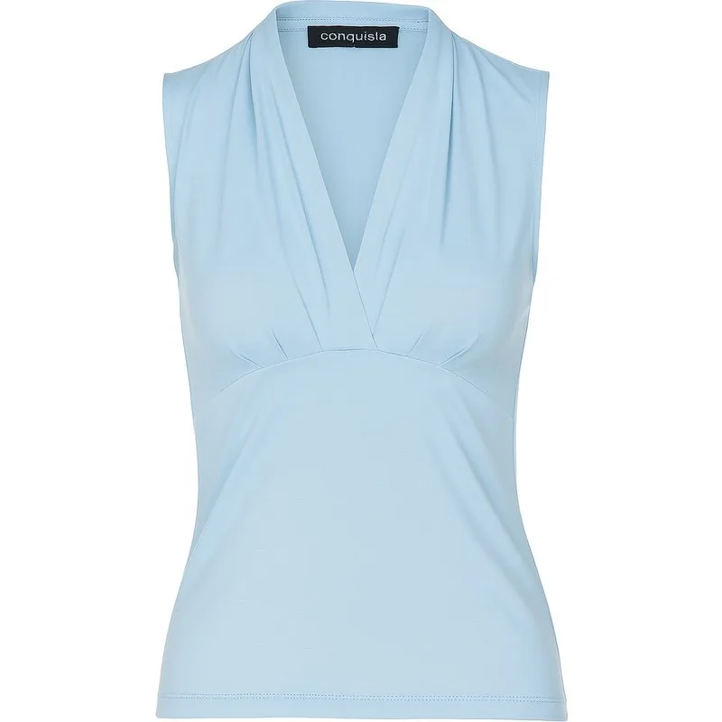 Lichtblauwe, mouwloze aansluitende top met V-hals, zachte viscosemix Prijzen