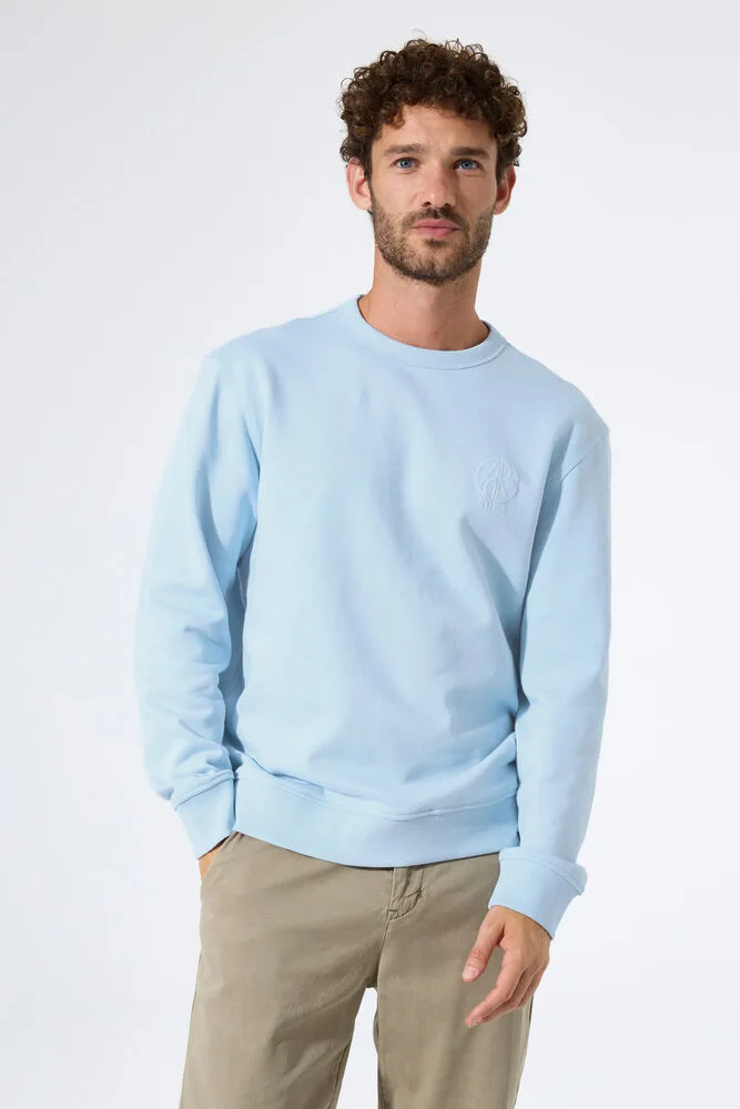 Sweater met subtiele borstopdruk. Deze sweater heeft een ronde hals, lange mouwen en een relaxed fit. Dit item is gemaakt van 70% katoen en 30% gerecycled katoen, wat zorgt voor een comfortabele en zachte feel. Better Cotton is een initiatief dat zich wereldwijd inzet voor betere omstandigheden in de katoenindustrie. Hergebruik van materialen draagt bij aan een circulaire economie.