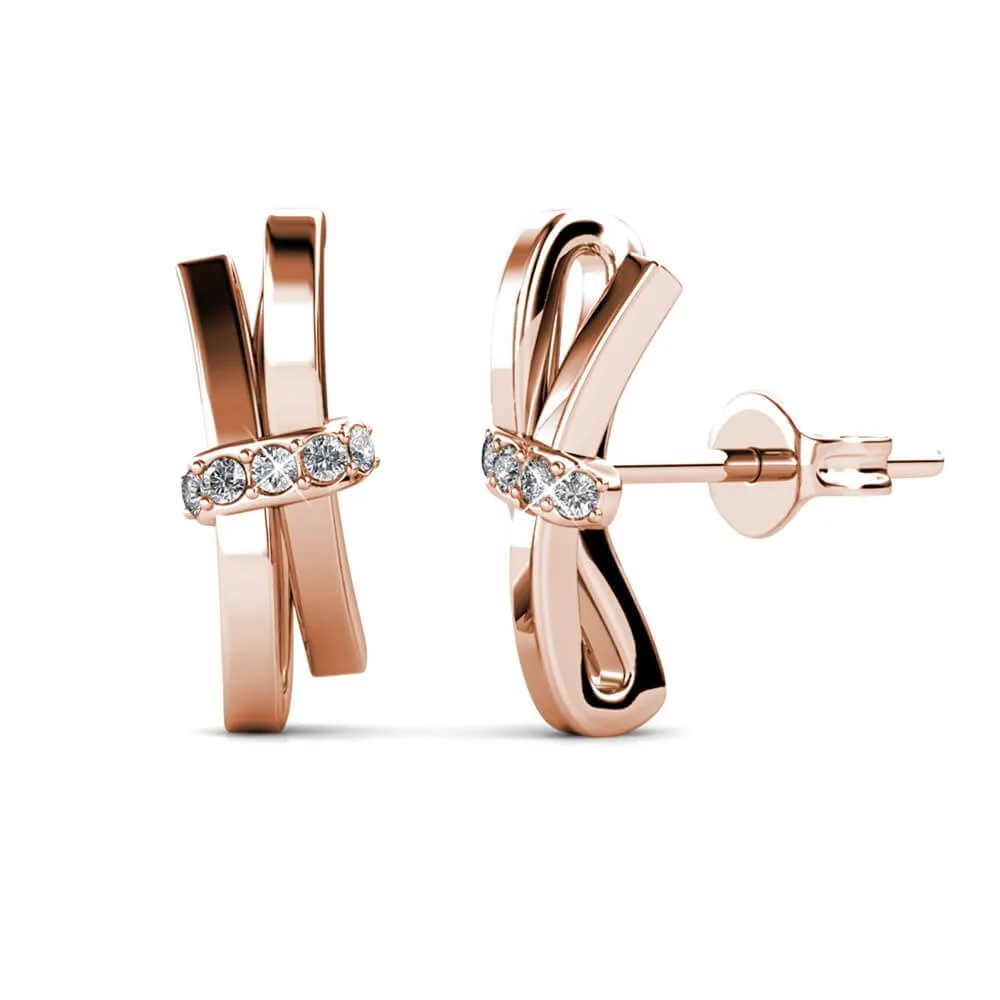 Lichtgevende strik oorbellen – roségoud en kristal Prijzen