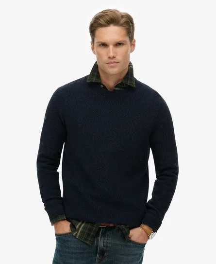 Relaxte pasvorm - de klassieke Superdry-pasvorm. Niet te nauwsluitend, niet te ruim, precies goed. Kies je gebruikelijke maat Ronde hals met geribde boorden Kenmerkend label op de mouw Onze lichtgewicht katoenen trui met textuur is een frisse kijk op de klassieke trui. We hebben hem vakkundig gemaakt van een prachtig materiaal met textuur en met klassieke afwerkingen zoals een ronde hals en geribde boorden; hij is authentiek Superdry, maar verheven om je dagelijkse looks nog beter te maken.