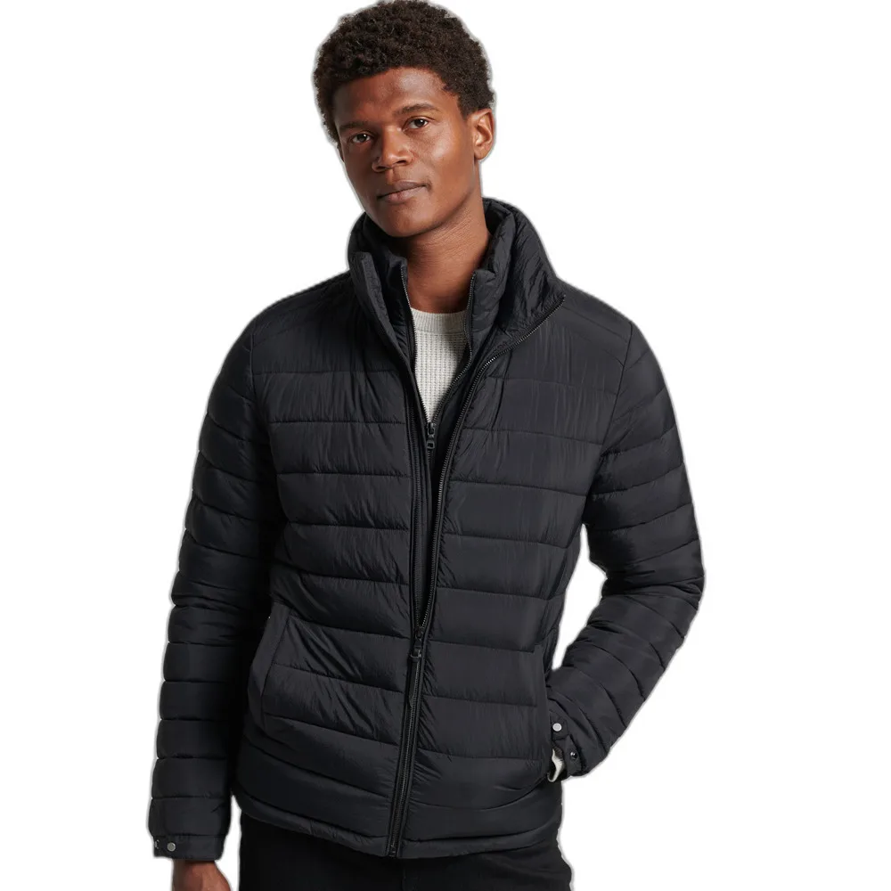 Ga voor een stijlvolle look met dit korte en lichte donsjack. Een must-have voor koud weer, deze klassieke winterstijl is altijd in stijl. Dit eenvoudige en klassieke must-have stuk kan gemakkelijk worden gecombineerd met uw casual outfits om uw stijl te updaten.Casual fit - de klassieke snit van Superdry. Niet te strak, niet te los. Precies goed. Kies uw gebruikelijke maatTwee buitenzakken met drukknopenBinnenzak met ritsDubbele ritssluitingAanspanning aan de onderkant van de jasElastische manchetten met drukknopenHandtekening metalen labelDe voering van deze jas is gemaakt van 100% gerecycleerd materiaal.Elke jas bevat tussen 5 en 48 gerecycleerde flessen, afhankelijk van het gewicht en de hoeveelheid gebruikte vulling, wat helpt om het afval dat naar de stortplaats gaat of de vervuiling van onze oceanen te verminderen. Voering: 100% Gerecycled Polyester Buitenkant: 3% Polyester,97% nylon Voering: 100% Polyester nylon
