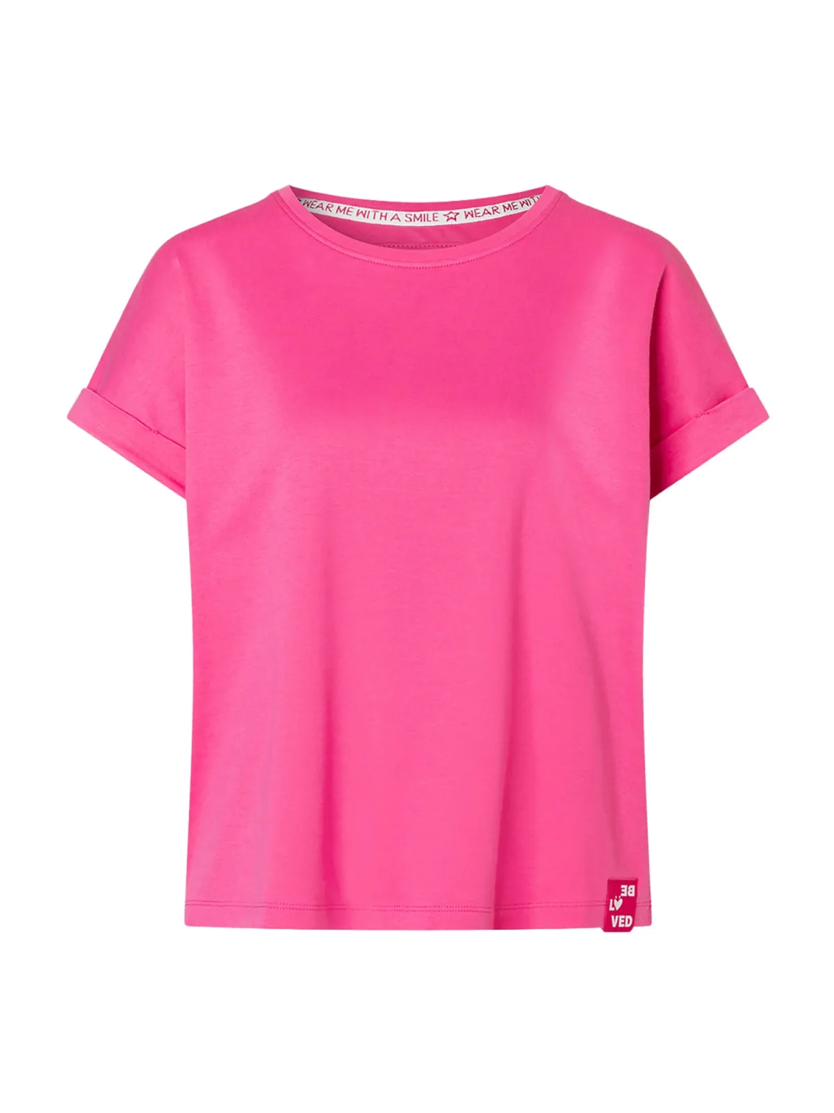 Design: Gevoerde zoom/rand, Mouw revers, Geribbelde kraag, Rechte zoom, Nektape; Materiaal: Jersey; Halstype: Ronde hals; Motief: Effen; Details: Borduursels, Plooien; Extra's: Label borduurwerk, Op staal naden, Voelt zacht aan, Huidvriendelijk materiaal; Pasvorm: Losse pasvorm; Armlengte: Kwartmouw; Lengte: Normale lengte
