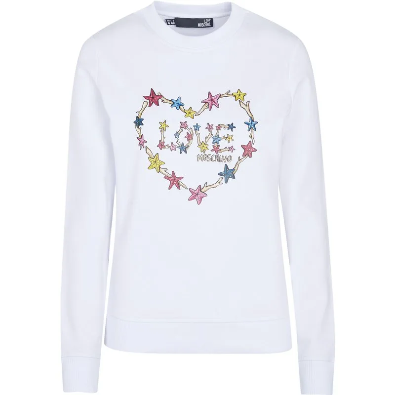 95% katoen, 5% spandex; Love Moschino-trui; Model: W630222E2246 A00; Hoogwaardige afwerking; Zachte katoenmix; ronde nek; lange mouw; Ik hou van Moschino-logodetails