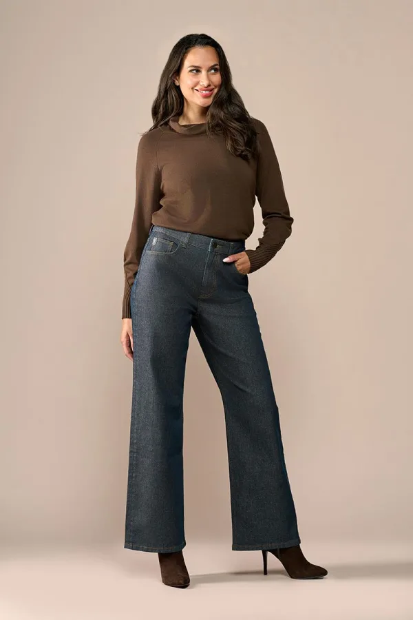 De Lienna broek in brons is een krachtige nieuwkomer binnen de denim lijn van Mart Visser. Deze donkerblauwe jeans met wijde pijpen is afgewerkt met een verfijnde bronzen coating, waardoor hij een chique en feestelijke uitstraling krijgt. Dankzij de hoge taille en de extra lange, wijde pijpen ontstaat een eigentijds silhouet, terwijl de aangesloten fit bij de heupen de broek vrouwelijk en flatterend houdt. De comfortabele katoenstretch zorgt voor een prettig draaggevoel, en met de vijf zakken behoudt de broek zijn klassieke jeanslook. Combineer deze broek met het bijpassende bronzen jack voor een complete denim co-ord die je gemakkelijk naar verschillende gelegenheden draagt. De Lienna broek is er ook in een zwarte glansvariant en een medium denim uitvoering, elk met een bijpassend jack. Dit is geen standaard jeans, maar een veelzijdige blikvanger die je keer op keer wilt dragen.