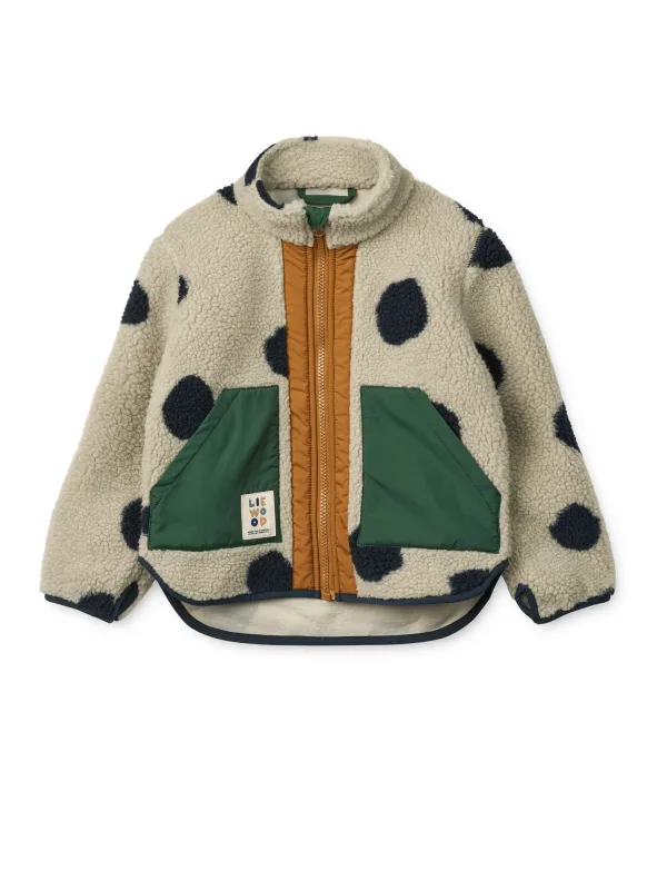 Liewood Fleece jas ‘Noam Pile’ ivoor / navy / honing / groen
