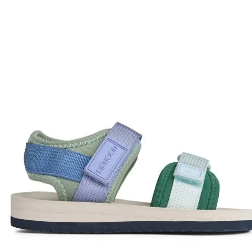 Deze lichte jongens sandaal van Liewood is gemaakt voor actieve kindervoeten die graag buiten zijn. De beige met groene kleur geeft een rustige, moderne look die makkelijk te combineren is met zomeroutfits. Dankzij de normale leest sluit de sandaal prettig aan en blijft er genoeg ruimte voor beweeglijke tenen.Comfort en gemak voor elke dag Bovenkant van soepel textiel dat zacht aanvoelt op de huid Voering van textiel voor extra draagcomfort, ook bij langere dagen Binnenzool van EVA voor een lichte demping bij iedere stap Rubberen buitenzool met goede grip op verschillende ondergronden Klittenbandsluiting die peuters en schoolkinderen zelf kunnen openen en sluiten Platte zool die zorgt voor stabiliteit tijdens rennen en spelen Geschikt voor peuters en schoolkinderen door de praktische pasvormIdeaal voor strand, speeltuin en vakantieDeze sandaal is een fijne keuze voor warme dagen, naar de speeltuin, op vakantie of gewoon in de tuin. De klittenbandsluiting maakt aan- en uittrekken snel en eenvoudig, ook als je kind niet lang stil wil staan. De stevige rubberen zool geeft vertrouwen bij klimmen, springen en rennen.Liewood: speels design voor kinderenLiewood staat bekend om kindvriendelijke ontwerpen met een rustige, Scandinavische uitstraling. De collecties combineren praktische details met een doordachte vormgeving, zodat schoenen en accessoires goed passen in het dagelijks leven met kinderen. Met deze sandaal kies je voor een doordacht ontwerp dat is afgestemd op kleine ontdekkers.Een fijne, lichte sandaal voor dagen vol spel, avontuur en beweging.