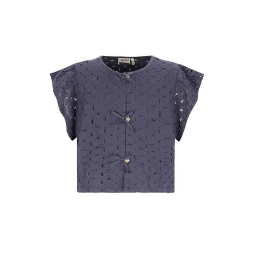 Deze donkerblauwe Like Flo blouse meisjes Charlotte is een luchtige en speelse top voor zonnige dagen. De korte vlindermouwen geven een vrolijke uitstraling en zorgen tegelijk voor veel bewegingsvrijheid. Door de ronde hals en het effen dessin laat de blouse zich gemakkelijk combineren met jeans, rokjes of een short. Gemaakt van 100% katoen voelt de stof zacht en comfortabel aan op de huid, ideaal voor dagelijks gebruik.Verfijnde details voor een speelse look Gemaakt van 100% katoen, prettig ademend en zacht om te dragen Donkerblauwe kleur, makkelijk te combineren met andere kledingstukken Korte vlindermouwen die luchtig vallen en extra bewegingsvrijheid geven Subtiele broderie-details voor een verfijnde, meisjesachtige uitstraling Strikje als accent, voor een extra speels detail Effen dessin zonder zakken, voor een rustige en nette uitstraling Ronde hals, comfortabel en geschikt voor elke dagVoor schooldagen, feestjes en vrije tijdDeze Like Flo blouse is geschikt voor allerlei momenten. Combineer met een jeans en sneakers voor school of speelafspraken, of draag de blouse met een rokje en sandalen voor een feestje of familiedag. De katoenen kwaliteit maakt de top prettig om ook langere tijd achter elkaar te dragen.Like Flo: modieus en kindvriendelijkLike Flo maakt kinderkleding met aandacht voor draagcomfort en trendgevoel. De ontwerpen zijn eigentijds, maar houden altijd rekening met de bewegingsvrijheid die kinderen nodig hebben. Zo ontstaat kleding die er modern uitziet en tegelijk praktisch is in het dagelijks leven.Een blouse voor wie houdt van comfortabel, luchtig en toch verzorgd gekleed gaan.