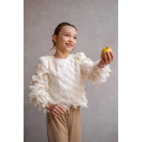 Deze Like Flo meisjes top Ella is een veelzijdige basic met speelse details. De top heeft een ronde hals en lange rechte mouwen, waardoor hij geschikt is voor verschillende seizoenen. De effen kleur maakt combineren eenvoudig en laat de franjes mooi opvallen. Dankzij het materiaal van 100% polyester blijft de stof vormvast en behoudt de top zijn gladde uitstraling.Verzorgde details voor elke dag Lange mouwen met rechte inzet voor een comfortabele pasvorm Effen kleur die makkelijk te combineren is met broeken en rokken Franjes als stijlvol detail aan de top Ronde hals voor een tijdloze uitstraling Knoopsluiting die aan en uit trekken eenvoudig maakt Gemaakt van 100% polyester voor een soepele stof Geschikt als basislaag of als blikvanger in een outfitGeschikt voor schooldagen en vrije tijdMet de lange mouwen en het rustige ontwerp past deze top goed bij alledaagse momenten. De top kan onder een vest of jasje worden gedragen tijdens koelere dagen en komt ook solo goed tot zijn recht op mildere dagen.De herkenbare stijl van Like FloLike Flo ontwerpt kinderkleding met aandacht voor draagcomfort en herkenbare details. De pasvormen zijn afgestemd op actieve kinderen en de designs sluiten aan bij actuele trends. Zo ontstaat kleding die prettig draagt en er verzorgd uitziet.Een doordachte meisjes top die moeiteloos meebeweegt met drukke dagen en ontspannen momenten.