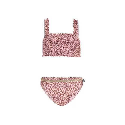 Deze meisjes bikini Tess met panterprint van Like Flo is gemaakt voor zonnige dagen aan het strand of bij het zwembad. De roze set bestaat uit een crop top en een bikinislip, beide met een speelse dierenprint en fijne ruches. Door het stretchmateriaal met 15% elastaan sluit de bikini mooi aan op het lichaam en kan je kind zorgeloos bewegen en spelen.Speels design met fijne details Set van 1 bikini met crop top en bijpassende bikinislip Roze panterprint met ruches en smockwerk voor een speels effect Comfortabele stretchstof met 15% elastaan voor een soepele pasvorm Zonder sluiting, de top wordt eenvoudig over het hoofd aangetrokken Geschikt voor peuters, kleuters, schoolkinderen en tieners Wasvoorschrift: wasbaar op 30 graden, lauw strijkbaar (1 punt) Niet drogen in de droogtrommel om de vorm en kleuren mooi te houden I.v.m. hygiëne dient zowel badkleding als ondergoed gepast te worden over je eigen ondergoed.Voor zomerse dagen vol waterpretDe Tess bikini is ideaal voor een dag vol waterpret. De crop top blijft goed zitten tijdens rennen, springen en zwemmen. De bikinislip biedt voldoende bedekking, terwijl de zachte stof prettig aanvoelt op de huid. Zo voelt je kind zich vrij om te spelen in en rond het water.Like Flo: modieuze kinderkledingLike Flo staat bekend om kinderkleding met vrolijke prints, doordachte details en een comfortabele pasvorm. De collecties sluiten aan bij de laatste trends zodat kinderen kleding kunnen dragen die er eigentijds uitziet en tegelijk prettig zit tijdens het dagelijkse spelen.Een praktische bikini voor kleurrijke dagen aan het water.