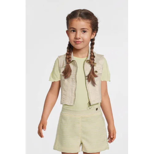 Dit gilet voor meisjes van Like Flo is mouwloos en heeft een klassieke kraag. Goud metallic van kleur en gemaakt van een materiaal dat voornamelijk uit katoen bestaat. Het heeft handige borstzakken en een glimmende uitstraling.