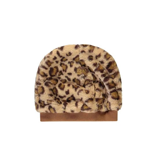 Meisjes muts van Like Flo. De muts heeft een panterprint en is gemaakt van imitatiebont.