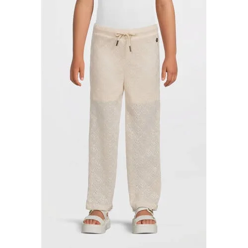 Deze Flo meisjesbroek van Like Flo is gemaakt van polyester. De straight fit en de elastische tailleband met koord zorgen voor een comfortabele pasvorm. De beige kleur en broderie details geven een stijlvolle uitstraling.