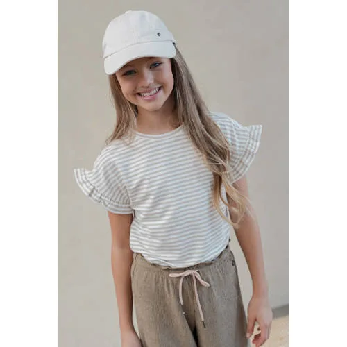 Speels, zacht en toch netjes, dit Like Flo meisjes T-shirt Emma is een praktische basic voor elke dag. De ecru kleur met bruine accenten past makkelijk bij veel broeken en rokjes. De korte kapmouwen met ruches geven het shirt een preppy uitstraling die geschikt is voor school, feestjes of een dagje weg. De soepele stof met stretch beweegt makkelijk mee, zodat je kind zich de hele dag vrij kan bewegen.Preppy details voor elke dag Effen T-shirt in ecru/bruin, goed te combineren met verschillende stijlen Korte kapmouwen met ruches voor een speels en meisjesachtig effect Ronde hals zonder sluiting, waardoor het makkelijk aan en uit gaat Gemaakt van een soepele stof met viscose en stretch, die zacht aanvoelt op de huid Geschikt voor peuters, kleuters, schoolkinderen en tieners dankzij de brede maatboog Wasbaar op 30 graden, lauw strijkbaar en niet geschikt voor de droogtrommelComfortabel bij spel, school en feestjeDit shirt past goed bij een korte broek, een preppy rokje of een stoere jeans. Geschikt voor schooldagen, spelen na school of een etentje met het gezin. Door de zachte stof en de rek voelt het shirt comfortabel, ook als er veel bewogen wordt. De effen kleur maakt het makkelijk om te combineren met favoriete prints en kleuren uit de kast.Like Flo: eigentijdse kinderkledingLike Flo staat voor modieuze kinderkleding met een speelse twist. De ontwerpen sluiten aan bij de laatste trends en blijven praktisch voor alledaags gebruik. Met aandacht voor draagcomfort en mooie details biedt Like Flo kindermode die aansluit bij de wensen van kinderen en waar ouders op kunnen vertrouwen.Een veelzijdig T-shirt dat er verzorgd uitziet en soepel meebeweegt in elke drukke dag.