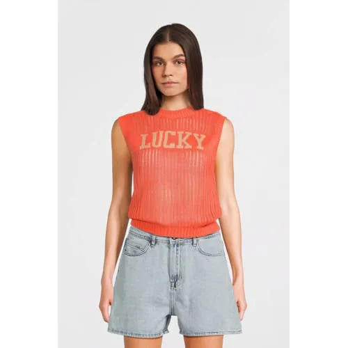 Like Flo Young mouwloze top oranje gebreid Prijzen