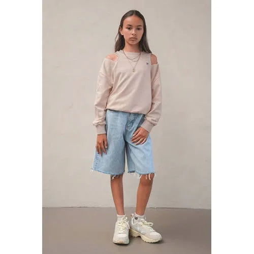 De Like Flo Tess is een zachte Like Flo sweater voor meisjes in een warme beige kleur, geschikt voor schooldagen en vrije tijd. Het comfortabele stretchkatoen voelt prettig aan op de huid en beweegt soepel mee, zodat spelen en rennen gewoon door kan gaan. De ronde hals en de lange mouwen maken deze sweater tot een praktische basic, terwijl de open shoulder zorgt voor een opvallend, speels detail.Details die het verschil maken Gemaakt van zacht katoen met stretch voor prettig draagcomfort Open shoulder detail voor een eigentijdse uitstraling Geribde boorden bij hals, mouwen en zoom voor een stabiele pasvorm Effen beige kleur, makkelijk te combineren met verschillende outfits Geen sluiting, de sweater trek je eenvoudig over het hoofd aan Geschikt voor schoolkinderen en tieners binnen de Like Flo Young lijn Wasbaar op 30 graden en lauw strijkbaar, niet drogen in de droogtrommelElke dag draagbaar, van school tot weekendDeze Tess sweater past goed bij een jeans, een sportieve broek of een rok met maillot. Geschikt voor naar school, een dagje weg of een middag thuis. De soepele stof en relaxte pasvorm geven genoeg ruimte om te bewegen, terwijl de kleur rustig oogt.Speelse stijl van Like FloLike Flo ontwerpt kinderkleding met oog voor comfort en een moderne stijl. De collecties combineren draagbare modellen met opvallende details, zodat kinderen veel bewegingsvrijheid hebben. Met Like Flo kies je voor kleding die past bij het actieve leven van meisjes en er tegelijk verzorgd uitziet.Een sweater die moeiteloos meegaat in het dagelijkse ritme van je kind.