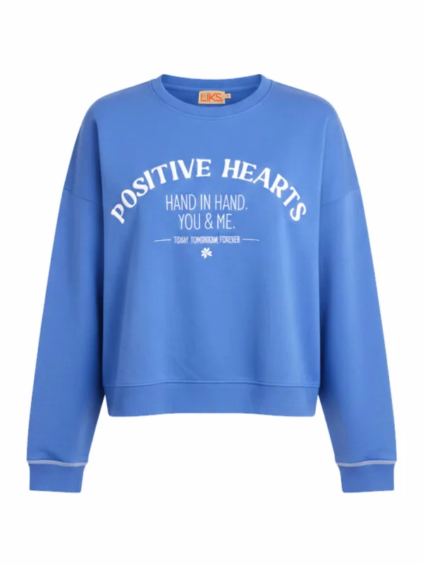LIKS. Munich Sweatshirt ‘Sweatpullover Positive Hearts’ royal blue/koningsblauw Prijzen