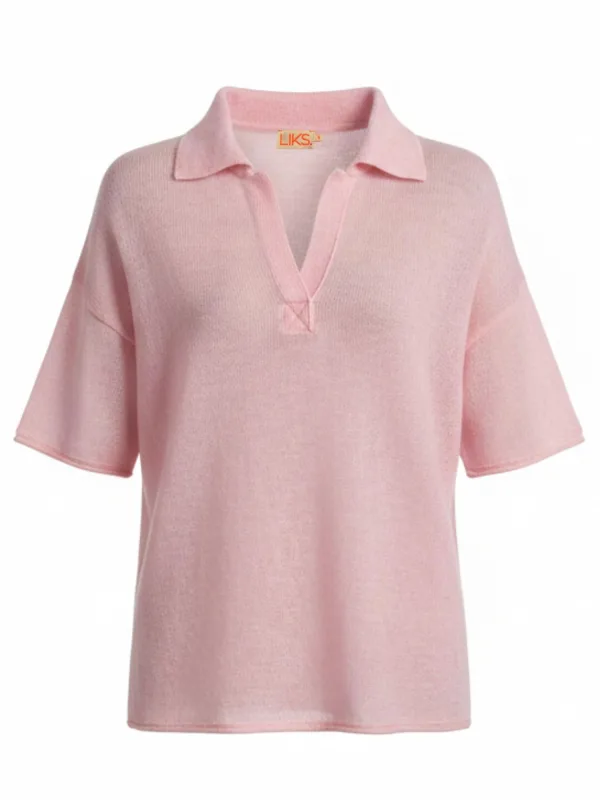 LIKS. Munich Trui ‘Knit Polo shirt Positive Hearts’ rosé