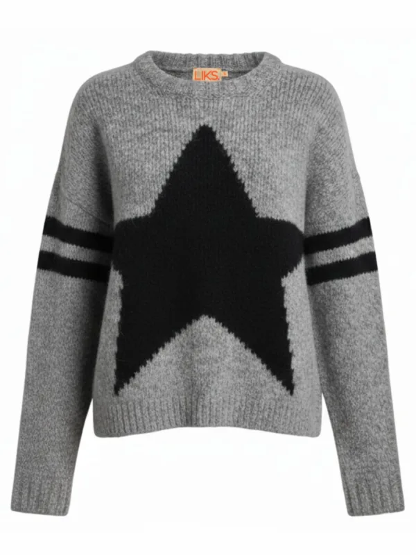 LIKS. Munich Trui ‘Knit sweater Star front’ grijs