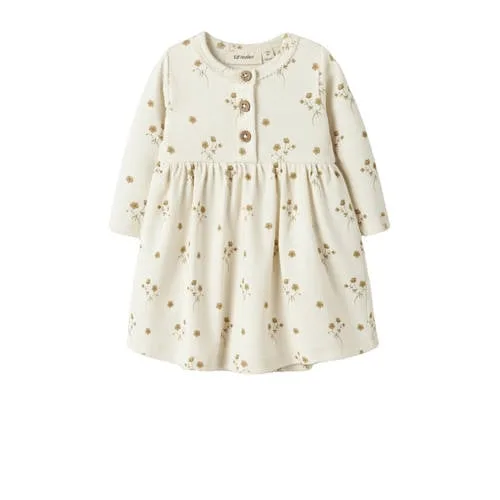De LIL' ATELIER babyjurk Nbflayo in ecru is een zachte, comfortabele jurk met een rustige uitstraling, speciaal ontworpen voor de allerkleinsten. De soepele stof met fijne stretch beweegt makkelijk mee, zodat je baby vrij kan kruipen, rollen en spelen. De subtiele bloemenprint en de plooien aan de voorkant geven de jurk een verzorgde look die zowel geschikt is voor elke dag als voor een speciale gelegenheid.Zachte details voor kleine meisjes Gemaakt van zachte stof met katoen voor een prettig gevoel op de huid Toegevoegd elastaan zorgt voor fijne rek, ideaal bij bewegen en omkleden Bloemenprint en plooien aan de voorkant voor een verzorgde, speelse look Lange, rechte mouwen en ronde hals voor een vertrouwde pasvorm Ecru kleur die gemakkelijk combineert met leggings, maillots en vestjes Vallen volgens maatadvies normaal, kiezen in de gebruikelijke maatFijn in het dagelijks gebruikDeze korte jurk is geschikt voor baby en newborn, van de eerste weken tot de grotere mijlpalen. Handig te combineren met een romper eronder en een warme maillot. Na een drukke dag kan de jurk in de wasmachine op 40 graden en doordat drogen in de droogtrommel niet nodig is, blijft de stof langer mooi.LIL' ATELIER BABY met aandacht gemaaktLIL' ATELIER BABY staat bekend om rustige kleuren, doordachte pasvormen en materialen die prettig aanvoelen op de tere babyhuid. De collecties sluiten aan bij een moderne, verzorgde stijl, waarin comfort net zo belangrijk is als het uiterlijk. Zo kies je voor kleding waar je baby zich vrij in kan bewegen en die er tegelijk netjes uitziet.Een zachte, praktische jurk waarmee je baby er elke dag verzorgd uitziet.