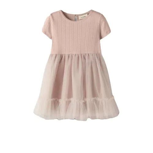 Voor een feestelijke dag of een speciale gelegenheid is deze oudroze meisjes jurk van katoen een stijlvolle keuze. De jurk uit de LIL' ATELIER MINI collectie heeft een zachte kleur en een verfijnde textuur, waardoor de jurk direct een verzorgde uitstraling geeft. Korte mouwen, een ronde hals en een soepel vallend model maken dit een prettig item voor peuters, kleuters en schoolkinderen.Fijne details voor bijzondere momenten Oudroze kleur die goed past bij gelegenheden zoals een bruiloftsgast Zichtbare textuur in de stof voor een luxe uitstraling Tule details die de jurk een speels en feestelijk karakter geven Korte, rechte mouwen die veel bewegingsvrijheid laten Ronde hals die rustig oogt en prettig draagt Knoopsluiting waardoor de jurk gemakkelijk aan en uit gaat Gemaakt van 50% katoen voor een zachte touch op de huid Wasbaar op 40 graden en lauw strijkbaar (1 punt)Ideaal voor feest en familiegelegenhedenDeze jurk past goed bij momenten waarop je kind net iets gekleder mag zijn, zoals een bruiloft, verjaardag of etentje. Combineer met nette schoentjes of sandalen en eventueel een fijn vestje als het frisser wordt. De pasvorm valt normaal volgens het maatadvies.LIL' ATELIER MINI: verfijnde kinderkledingLIL' ATELIER MINI staat bekend om kinderkleding met aandacht voor detail en een rustige, stijlvolle uitstraling. De collectie combineert draagbare ontwerpen met zachte kleuren en doordachte afwerking, zodat kinderen zich comfortabel kunnen bewegen terwijl de outfit er verzorgd uitziet.Een elegante jurk die comfort en een feestelijke uitstraling op een natuurlijke manier samenbrengt.