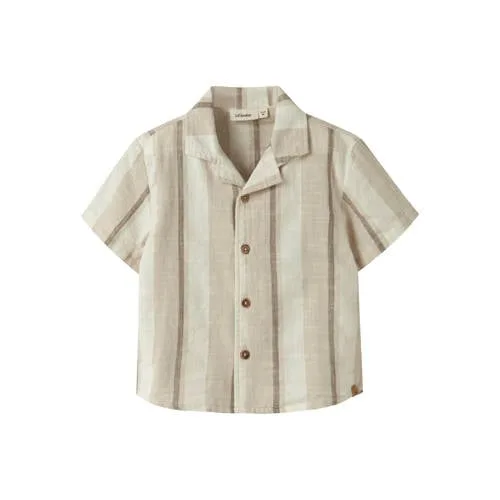 LIL' ATELIER MINI loose gestreept casual overhemd beige met textuur