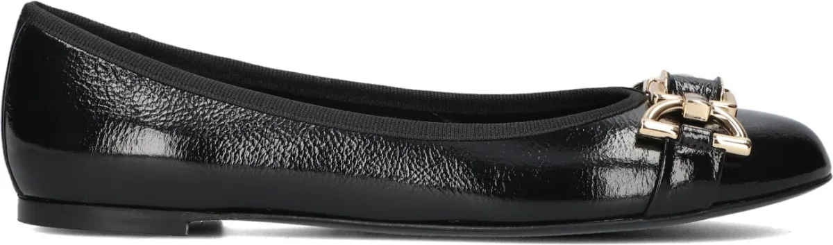 Instapper voor dames van het merk Lina Locchi. Deze instapschoen is uitgevoerd in zwart leer met laklook. Op de neus van de schoen bevindt zich een goudkleurige decoratie. De binnenkant is uitgevoerd in leer en een stevig contrefort draagt bij aan het loopgemak. De rubberen zool heeft een medium profiel en de hak meet circa 1 cm.