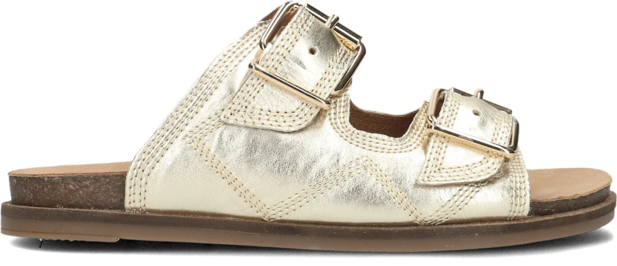 Dames Led 2 Band Slipper Met Stiksels, Maat: 41, Materiaal: Leer, Kleur: Goud