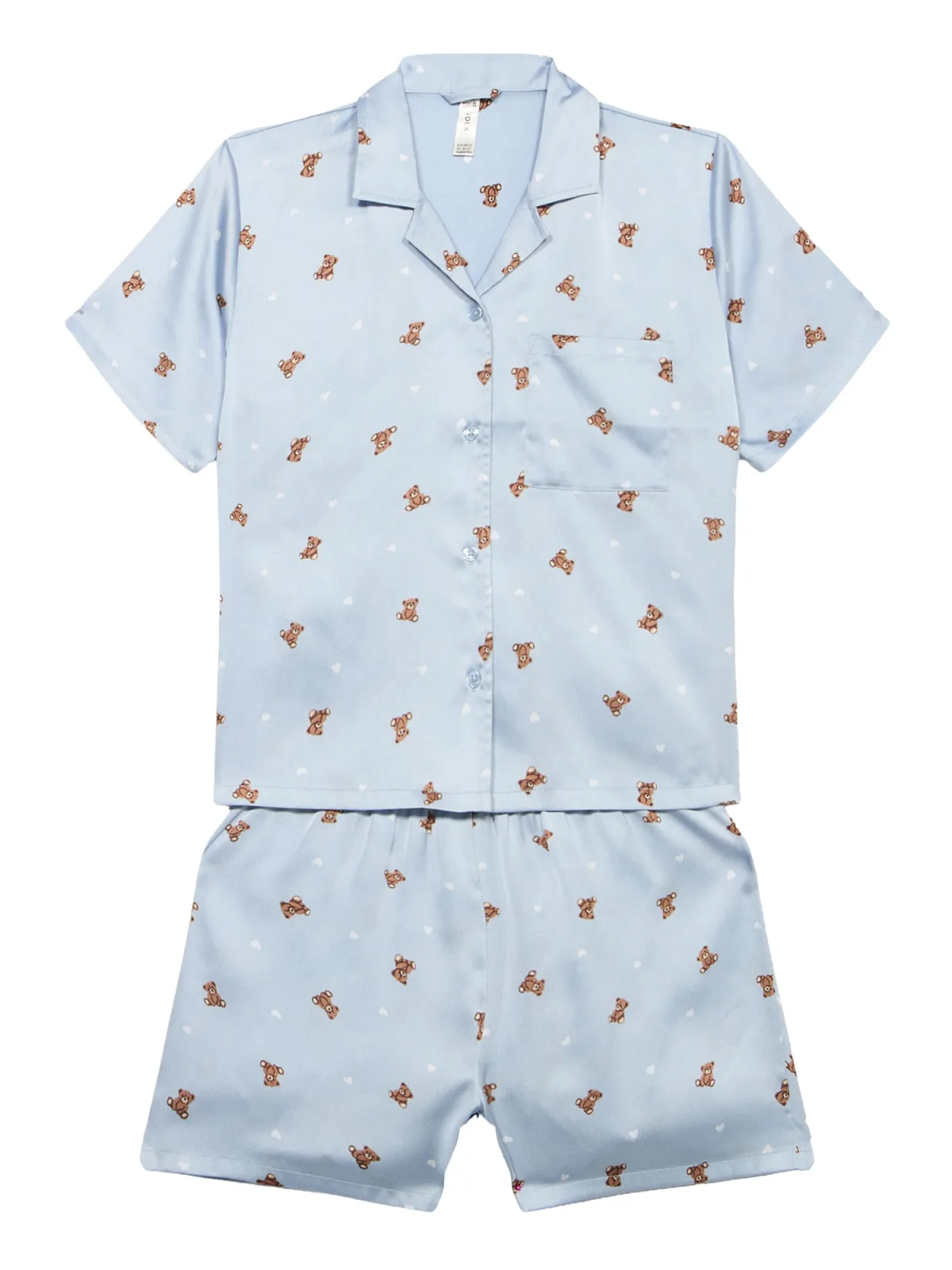 Type sluiting: Knoopsluiting; Materiaal: Satijn; Extra's: All-over patroon, Lichte stof, Huidvriendelijk materiaal; Aantal per set: 2-delig; Lengte: Kort/mini; Pasvorm: Normale pasvorm