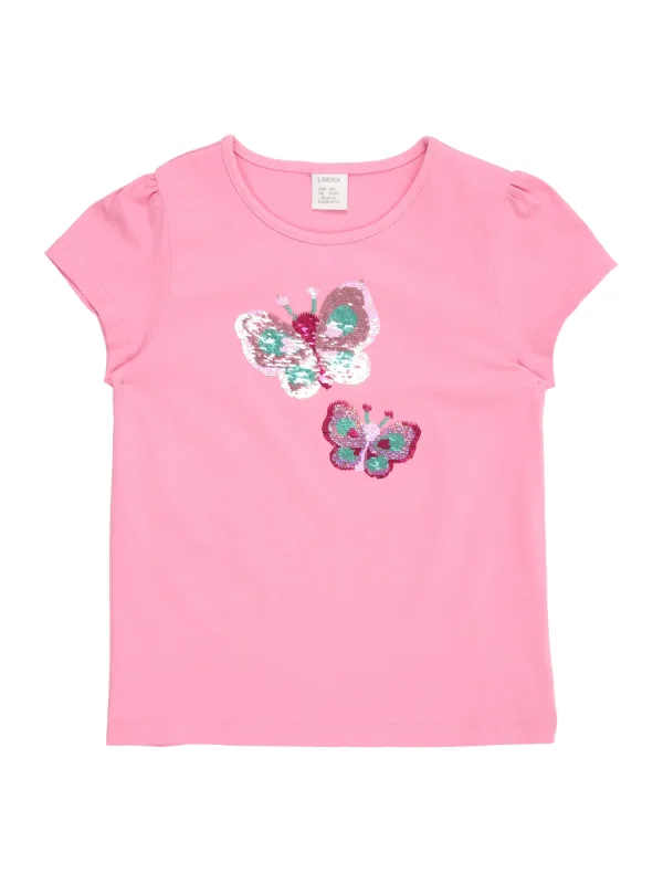 Design: Gevoerde zoom/rand, Geribbelde kraag, Nektape; Materiaal: Jersey; Halstype: Ronde hals; Motief: Motiefprint; Details: Pailletten; Extra's: Op staal naden, Voelt zacht aan; Pasvorm: Normale pasvorm; Armlengte: Kwartmouw; Lengte: Normale lengte