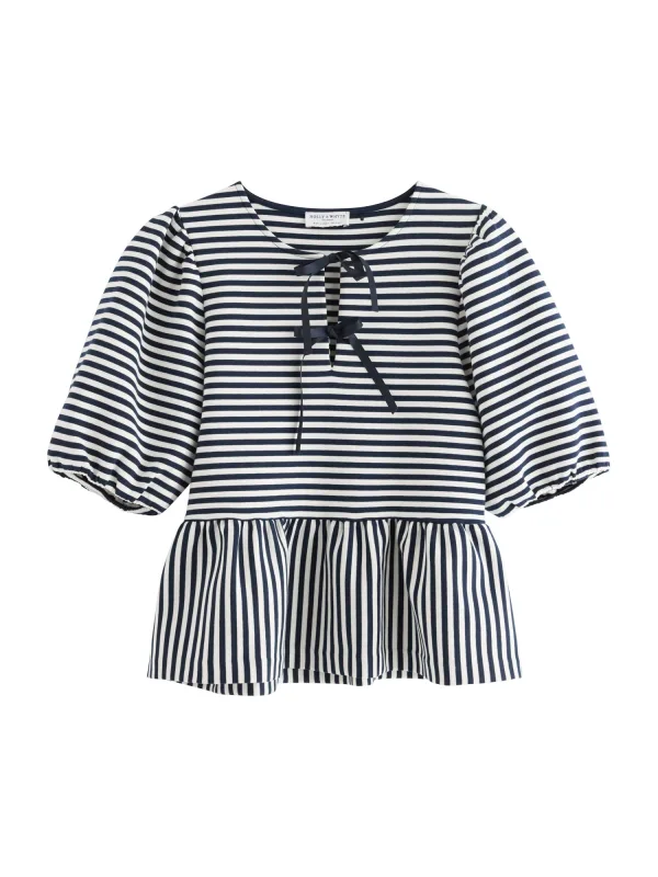 Design: Elastische taille/zoom, Om te knopen/binden; Materiaal: Jersey; Halstype: Ronde hals; Motief: Gestreept; Details: Volant, Gedrapeerd; Extra's: All-over patroon, Voelt zacht aan; Pasvorm: Normale pasvorm; Armlengte: Halve mouw; Lengte: Normale lengte