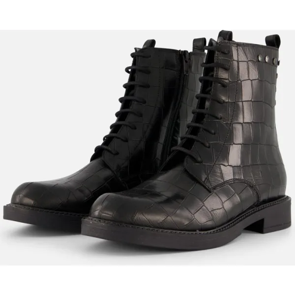 Linea Zeta Linea Zeta Croco Veterboots zwart Leer
