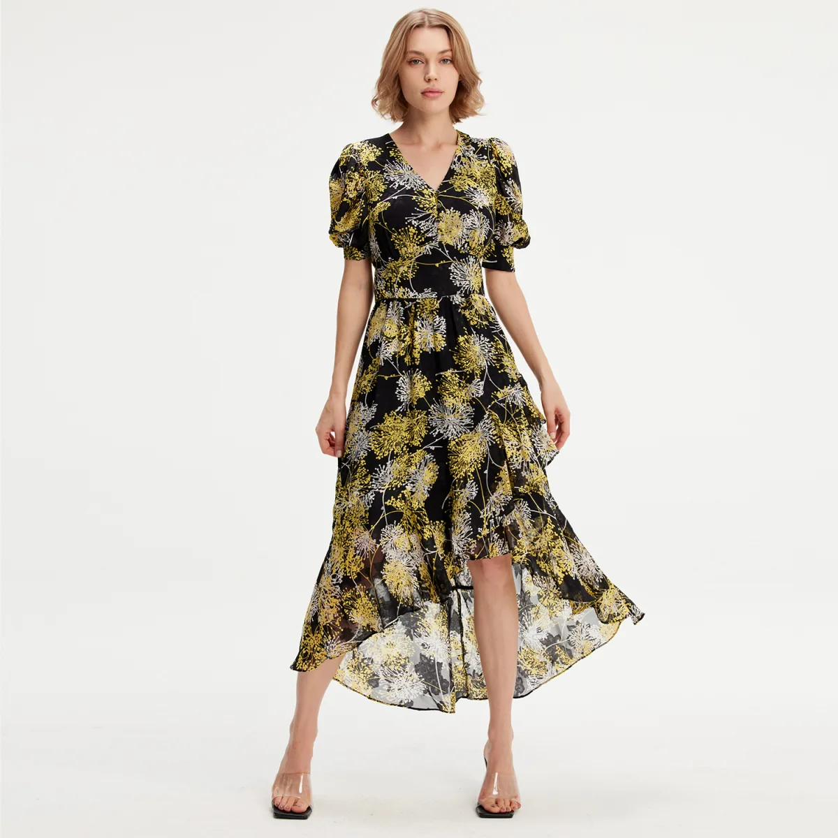 Lineaire bloemafdruk Gemeende zoomjurk Prijzen