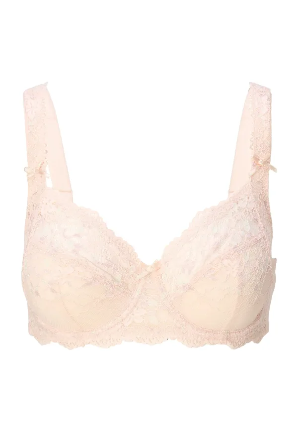 Cup soorten: Full cup bh; Soort bandjes: Normale bandjes; Bh/bikini type: Minimizer; Beugel: Met beugel; Design: Haaksluiting; Type sluiting: Haakjes; Motief: Effen; Details: Kant; Extra's: Applicaties, Op staal naden