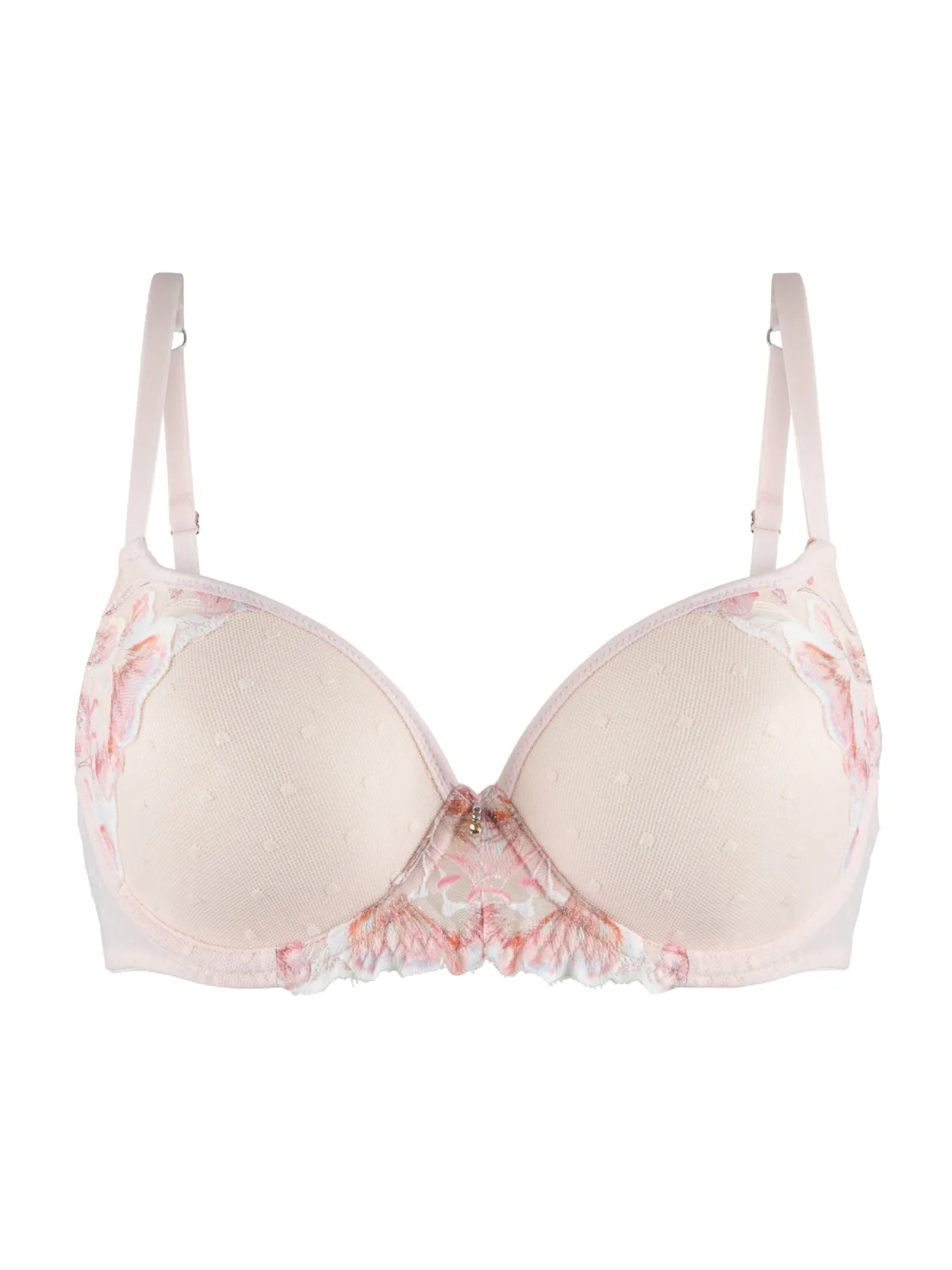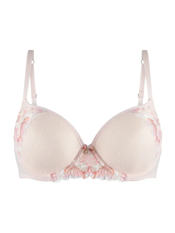 Cup soorten: Full cup bh; Soort bandjes: Normale bandjes; Bh/bikini type: T-shirt; Beugel: Met beugel; Design: Ingelegde zoom/rand; Type sluiting: Haakjes; Motief: Bloemenprint; Details: Kant; Extra's: Verstelbare bandjes, Applicaties